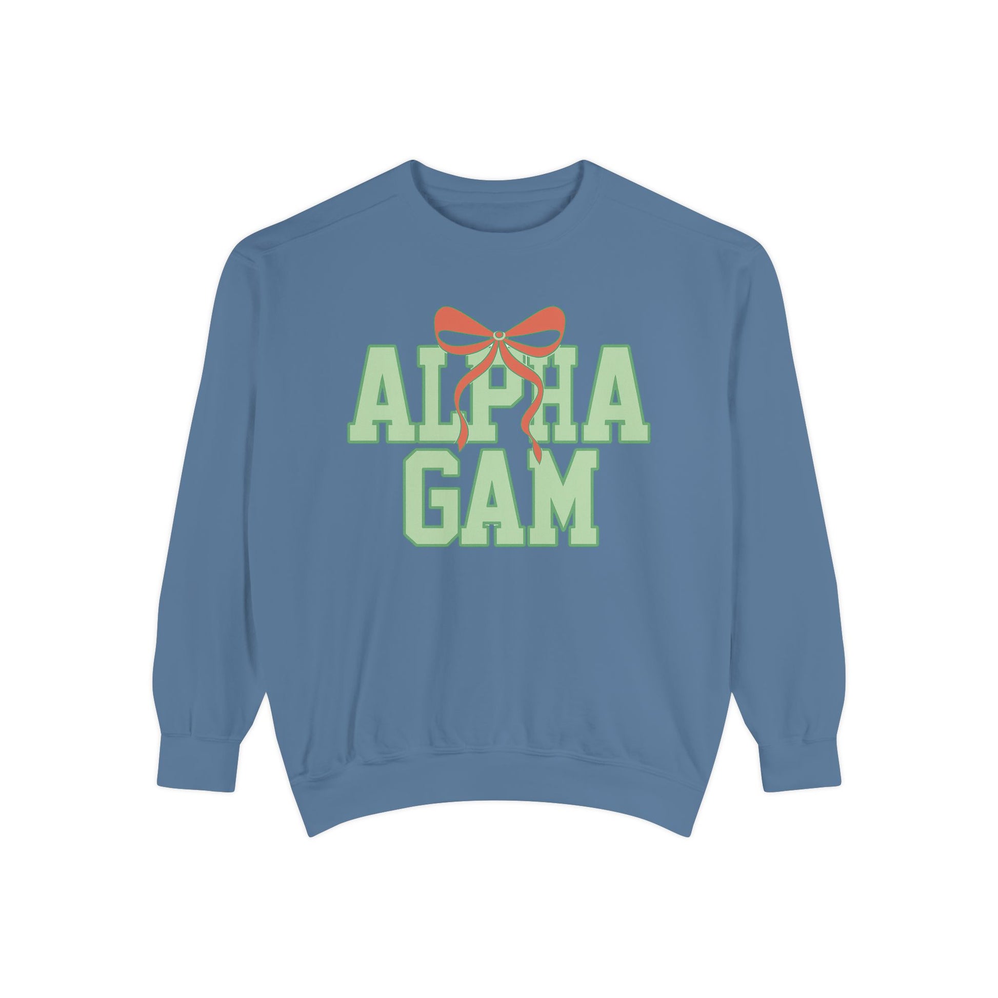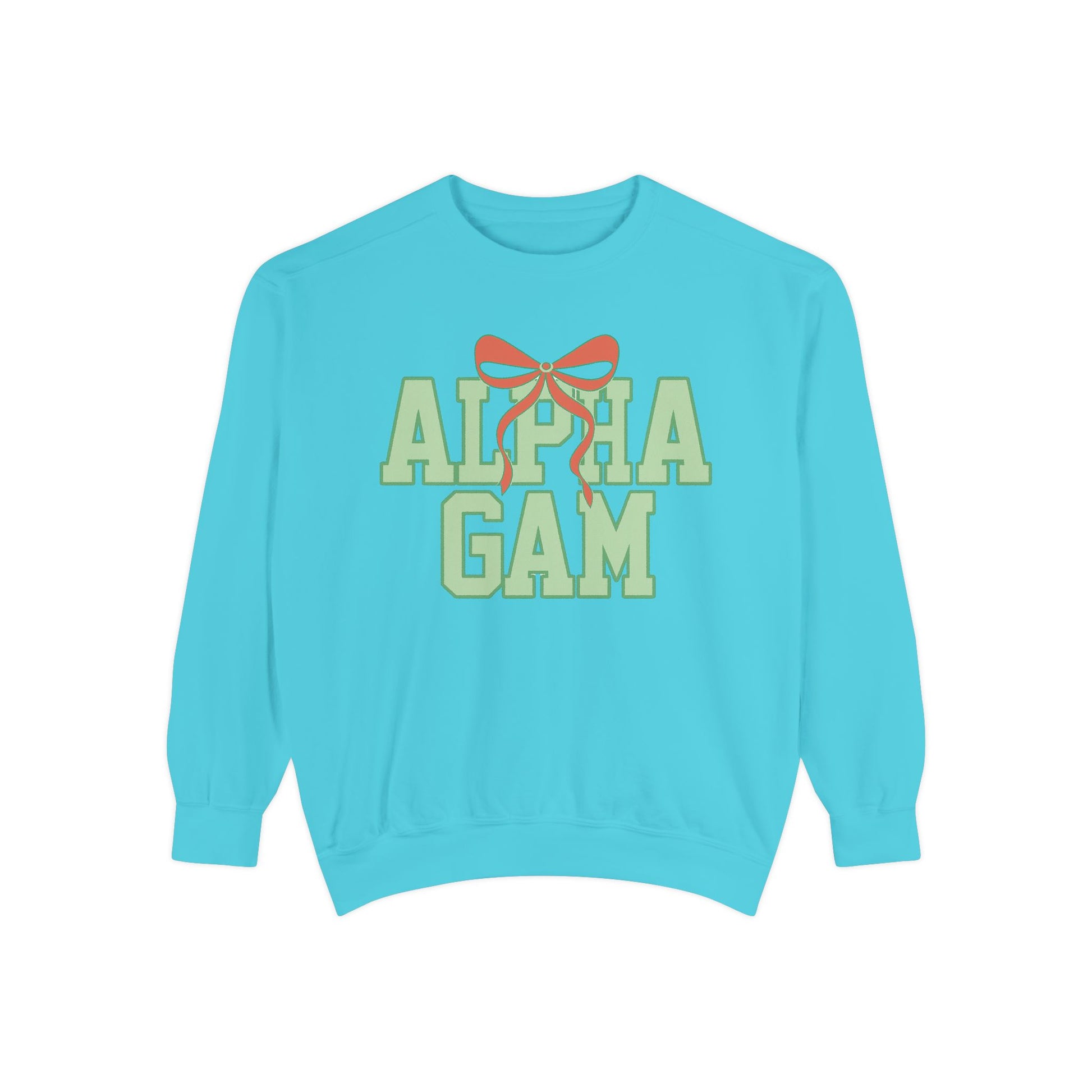 Unisex Holiday Sweatshirt, Cozy Christmas Apparel, Alpha Gam Spirit Wear, Festive Gift for Sorority Sisters, Comfortable Sweater for all occasions