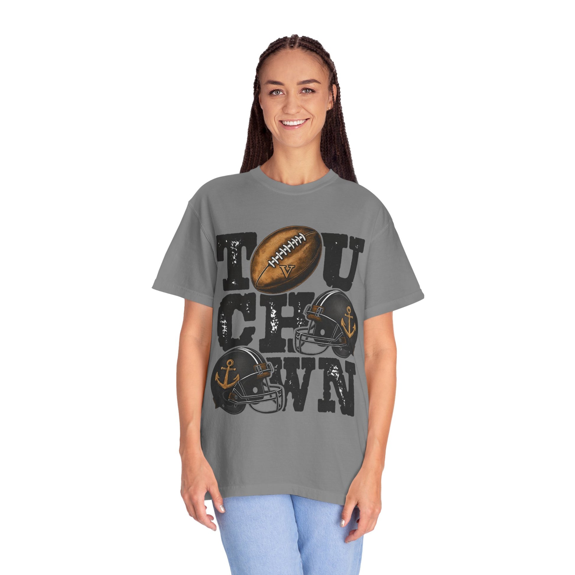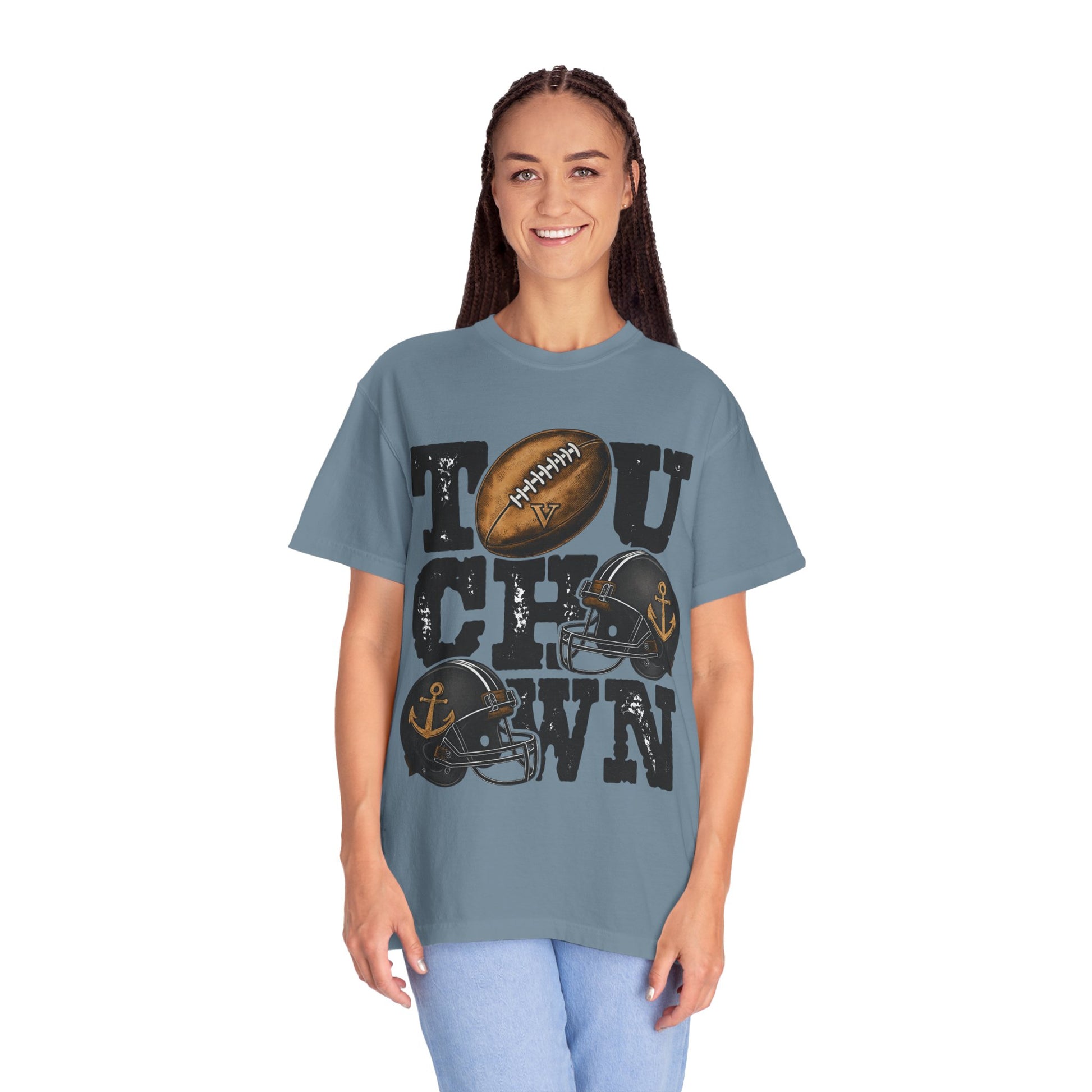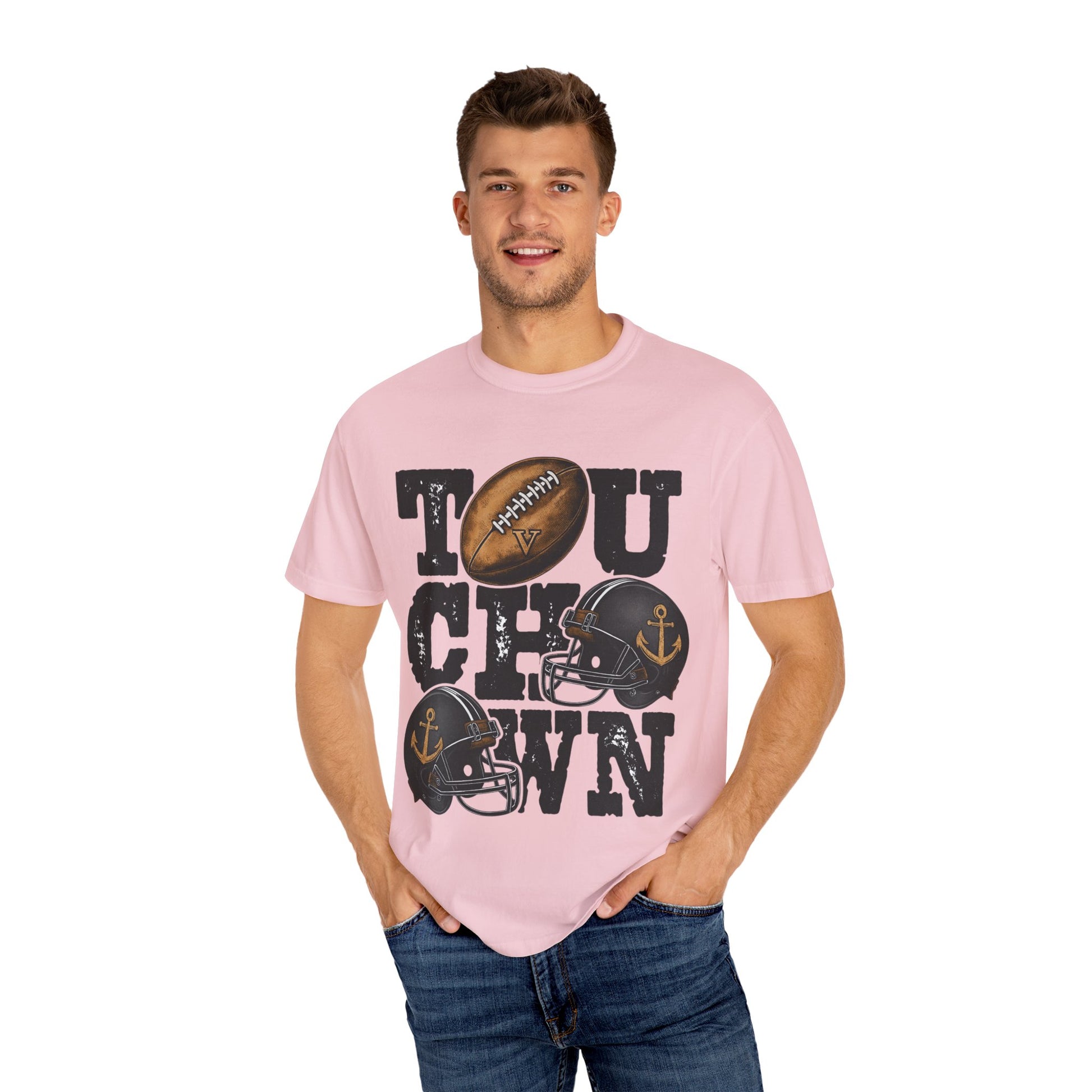 This Anchors Touchdown Football T-Shirt exudes a sporty and casual vibe, perfect for football fans and sports enthusiasts. It can be worn to football games, tailgates, sports bars, and casual hangouts. Ideal for those who love football and want to show their passion for the game. Great for football season, Super Bowl parties, and game days.