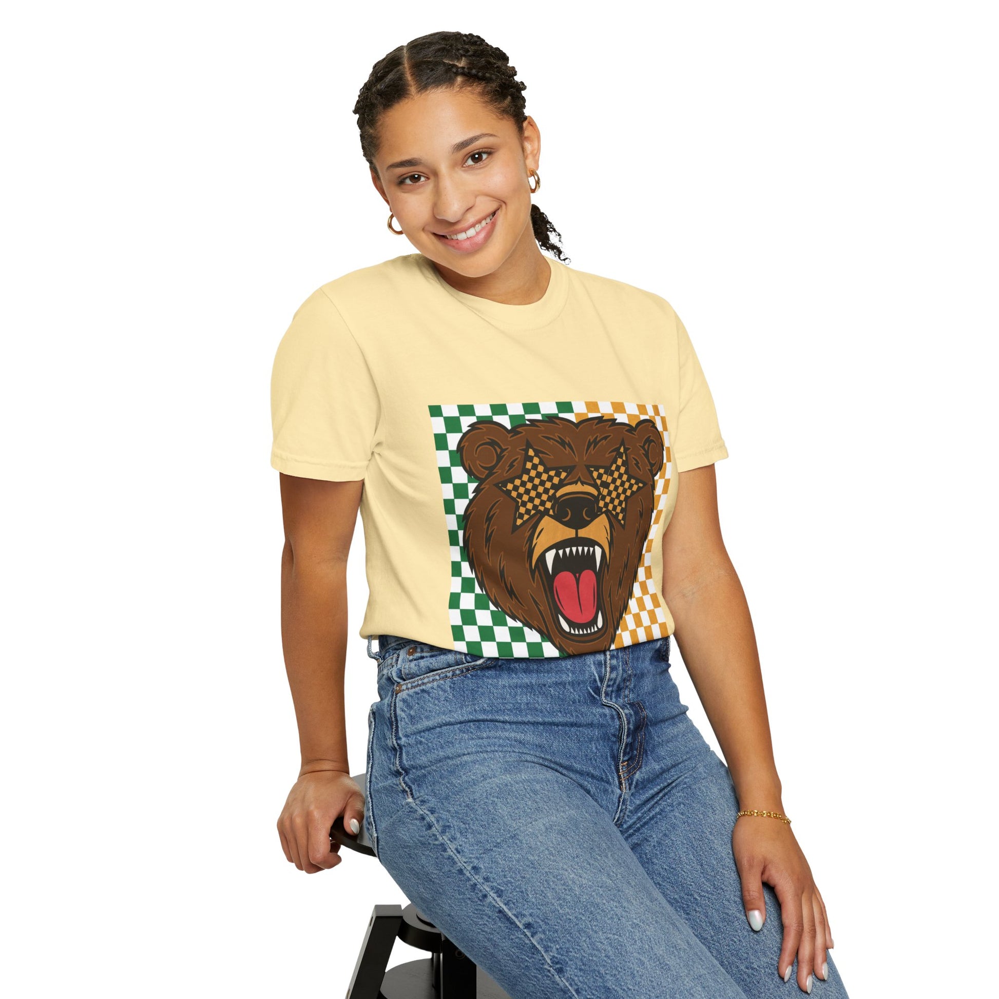 This Texas Checkered BU Bear-Themed Unisex T-Shirt is a fun graphic tee perfect for casual wear. It makes a unique summer tee and a great gift for bear lovers and nature enthusiasts. The relaxed fit and garment-dyed fabric provide a soft and comfortable feel, fitting into anyone's wardrobe effortlessly. Ideal for celebrating nature, summer, birthdays, and casual occasions.