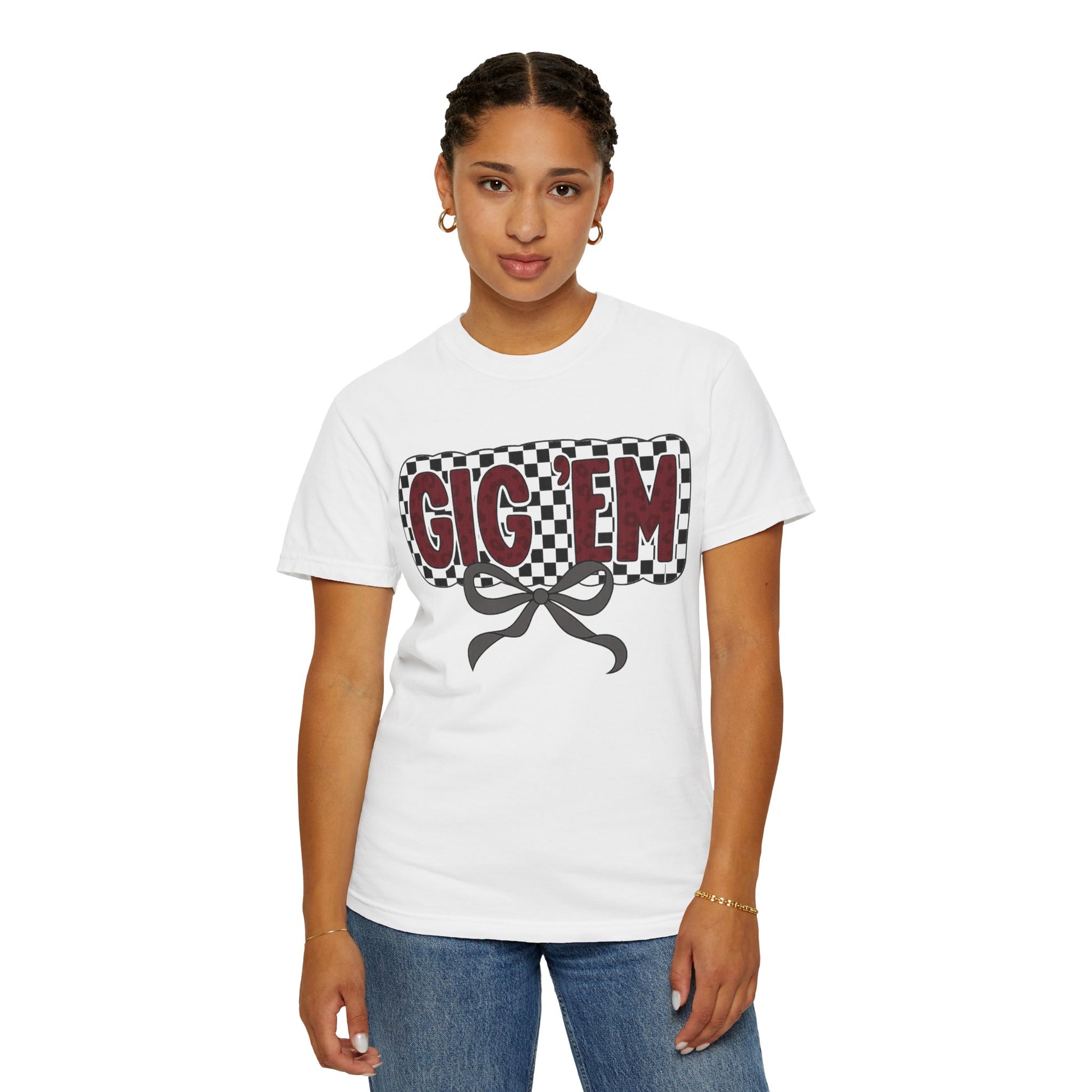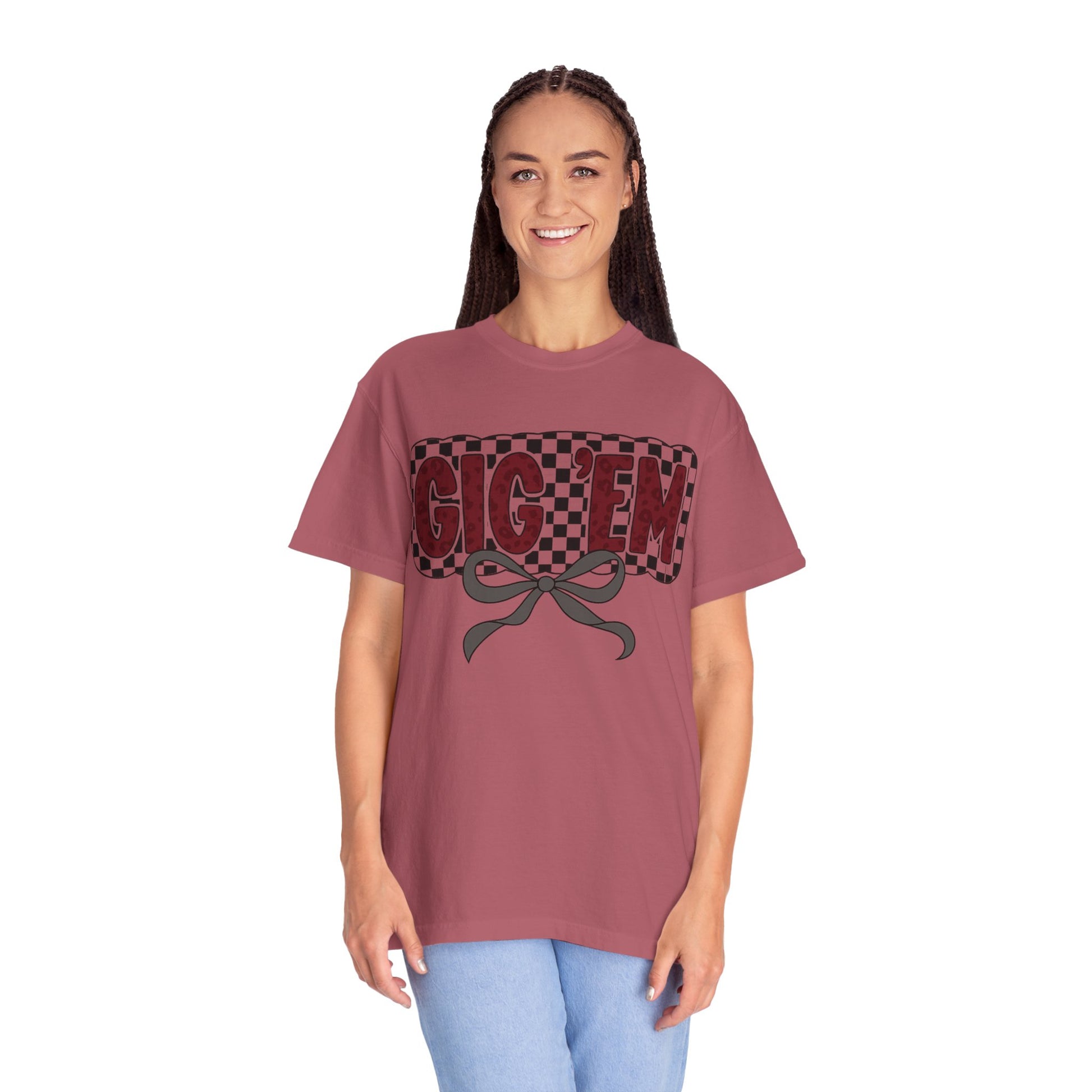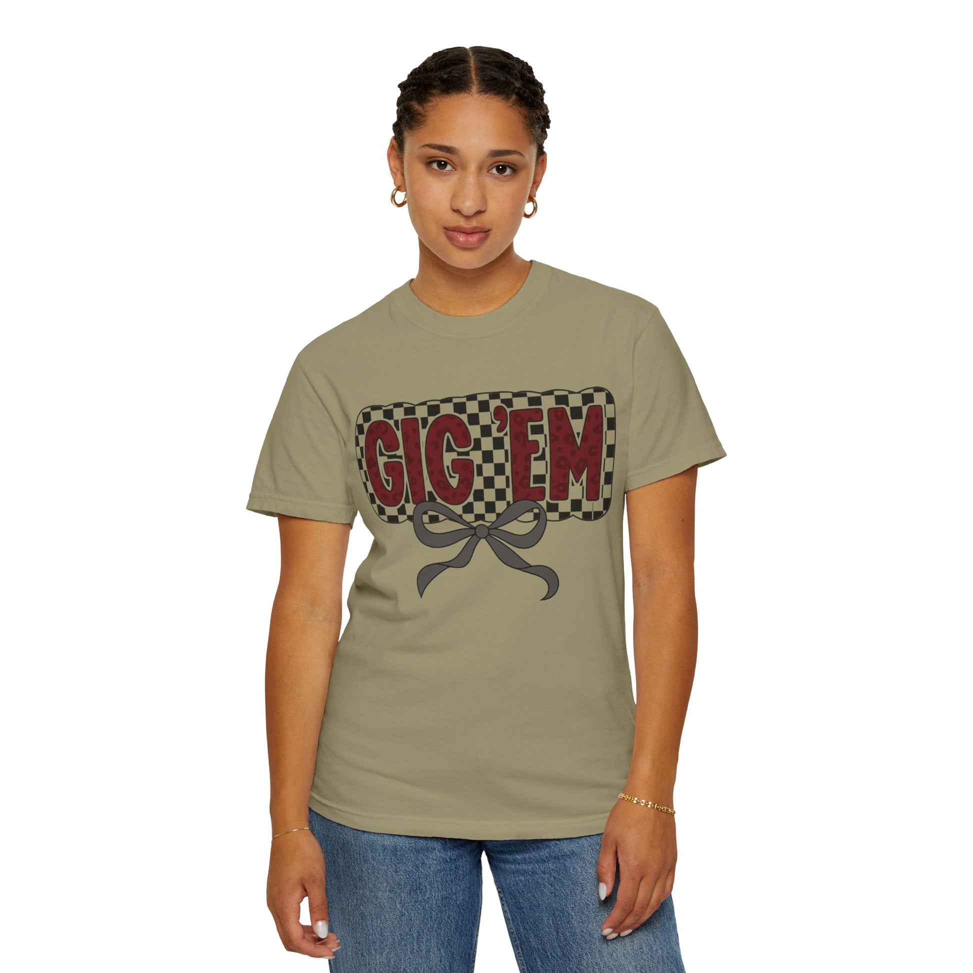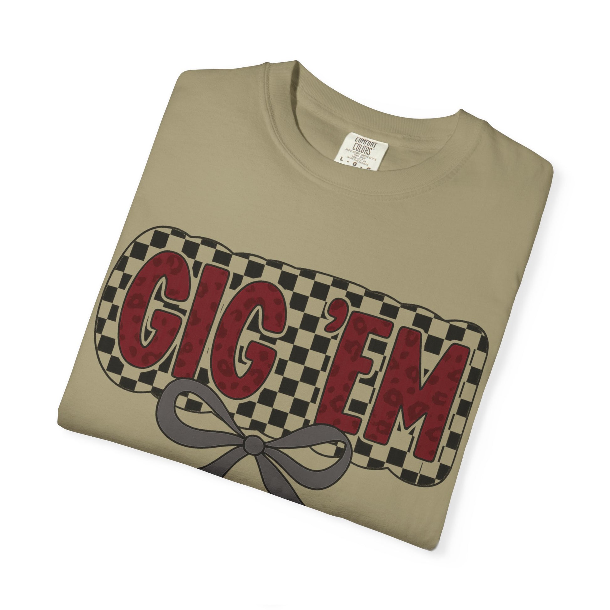 Checkered Style Unisex T-shirt with 'GIG'EM' Design, Trendy Graphic Tee for Casual Wear, Fan Merchandise, Gift Idea, Summer Essential