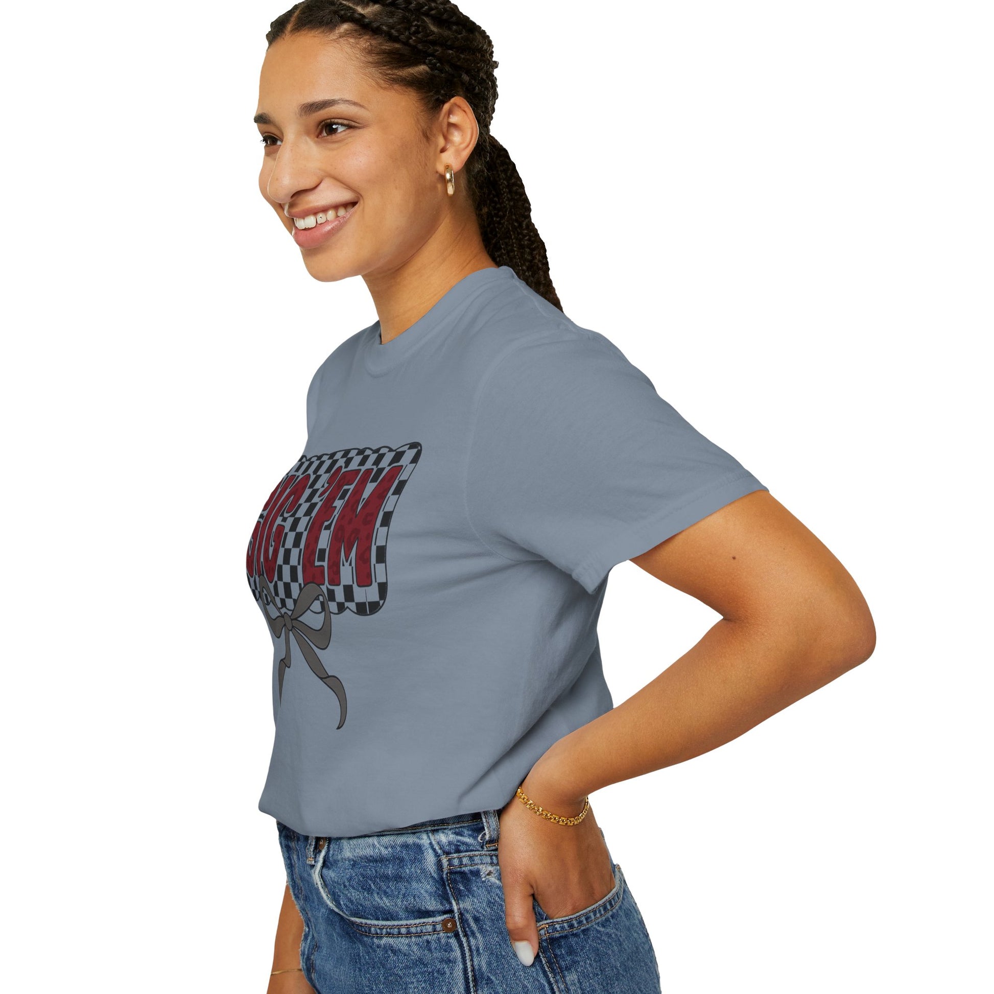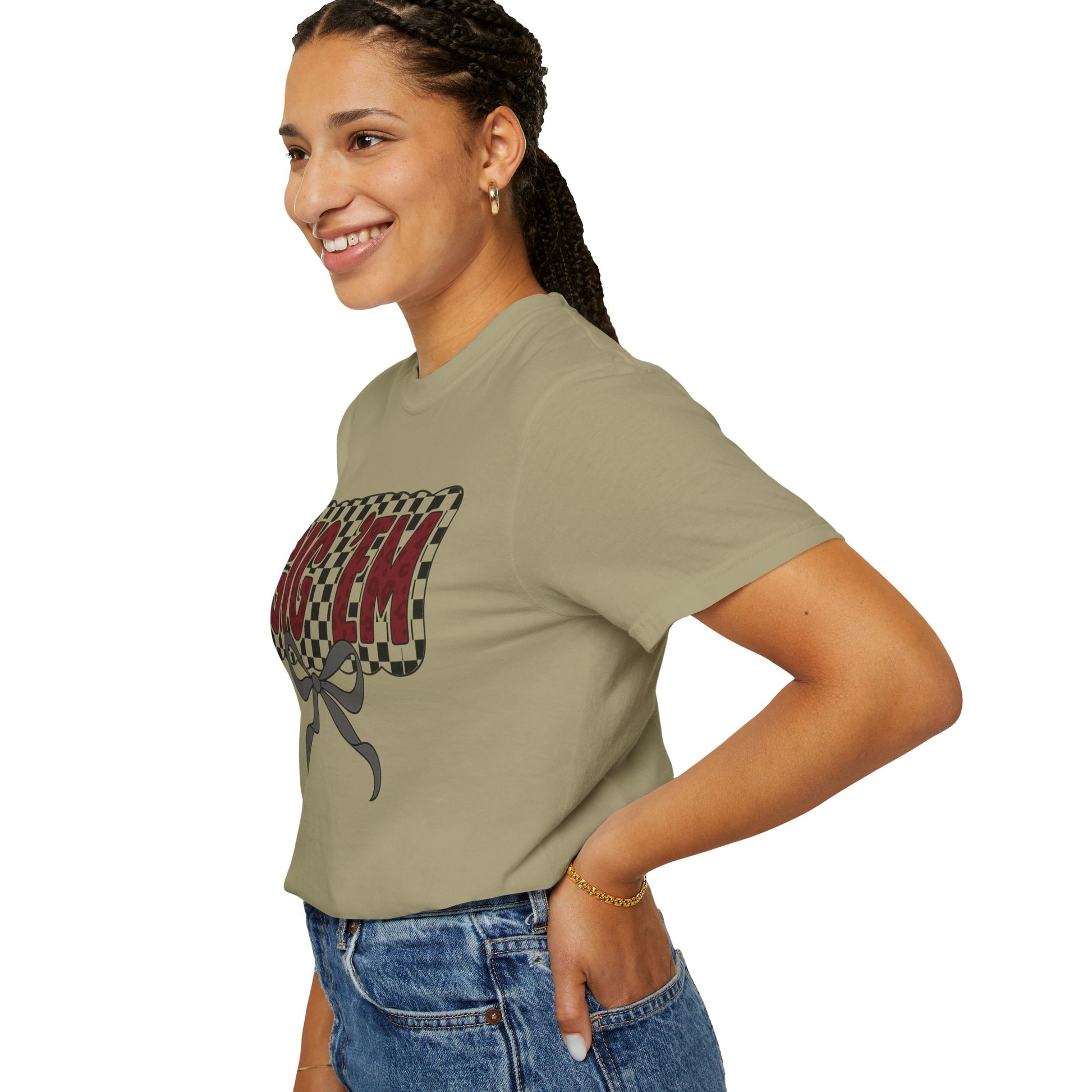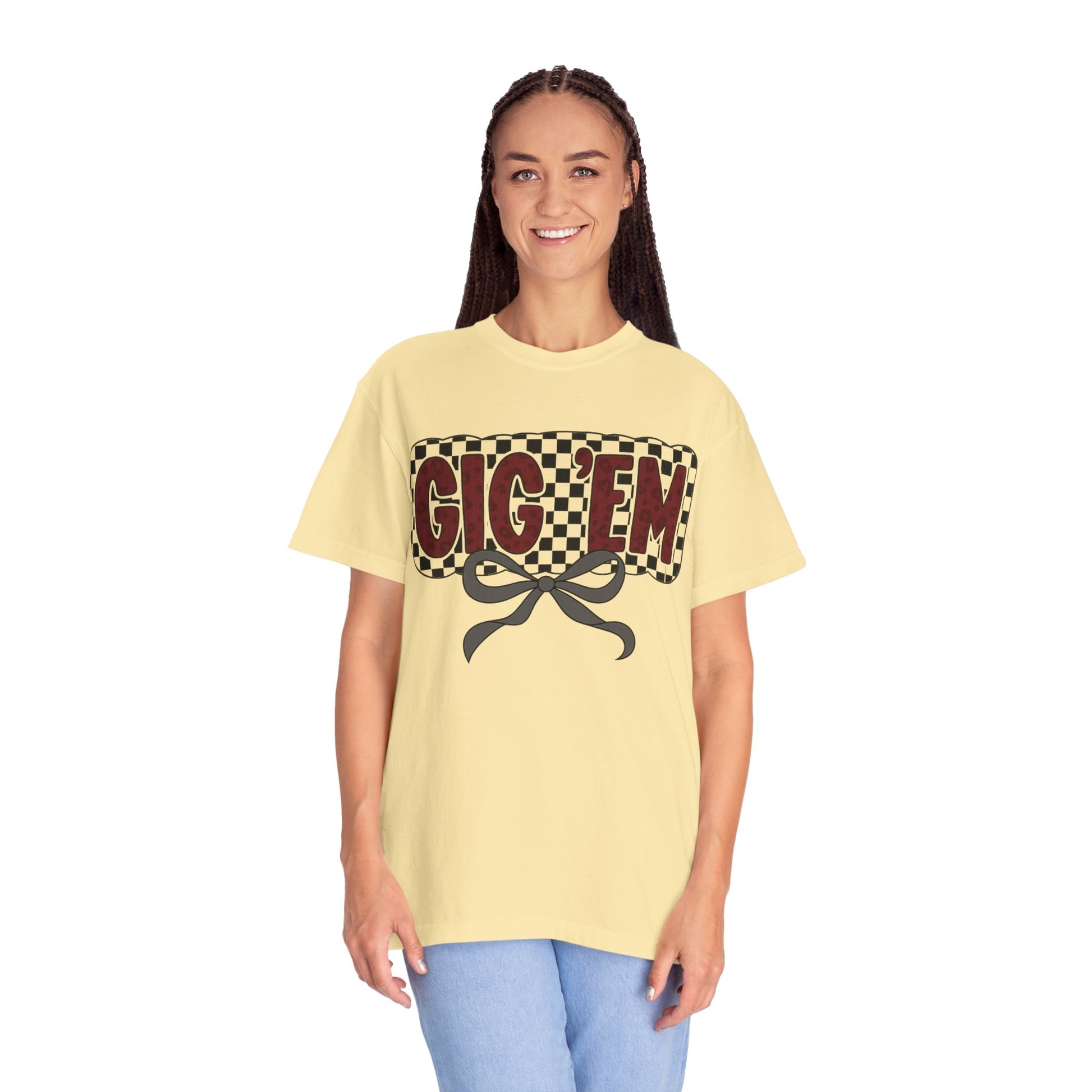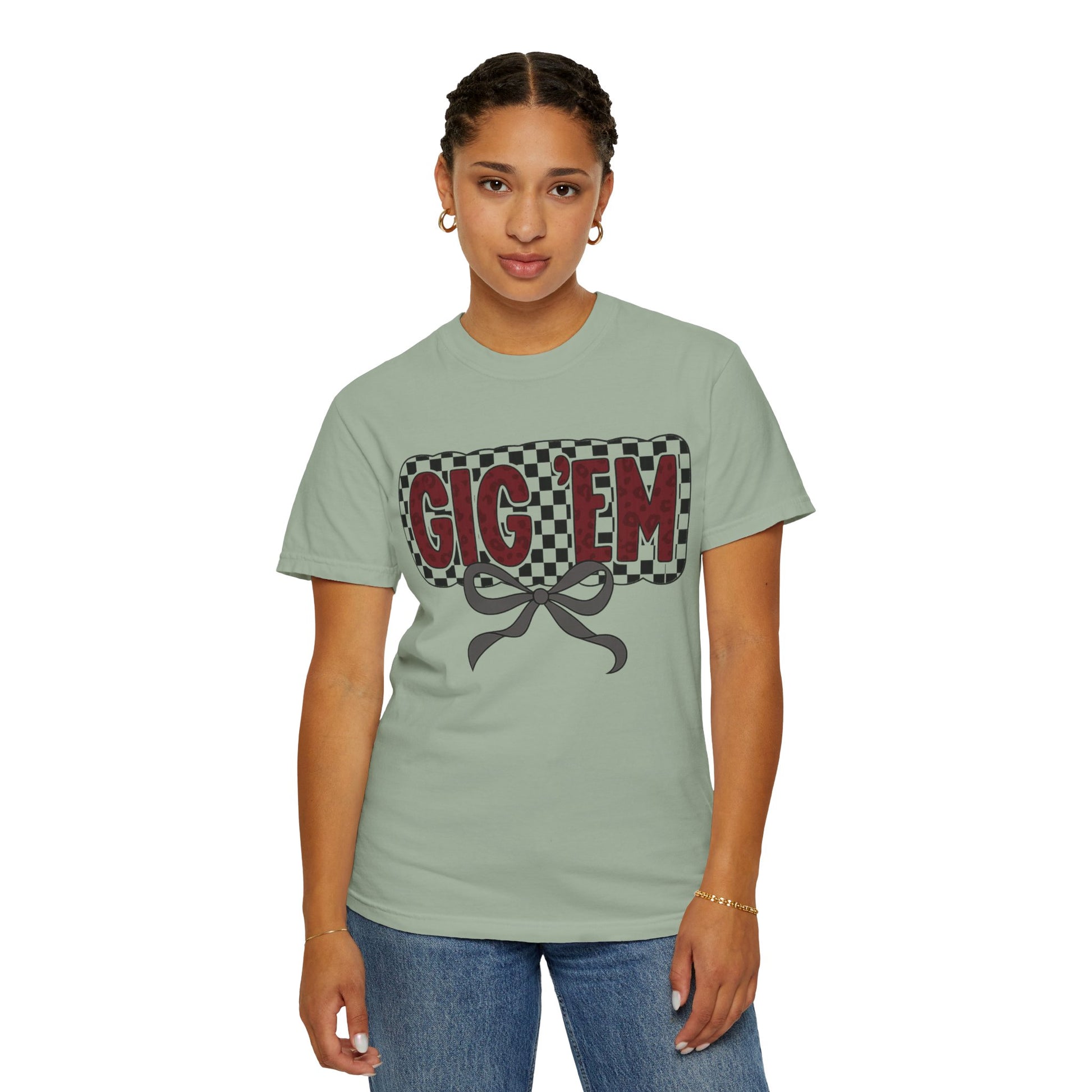 Checkered Style Unisex T-shirt with 'GIG'EM' Design, Trendy Graphic Tee for Casual Wear, Fan Merchandise, Gift Idea, Summer Essential