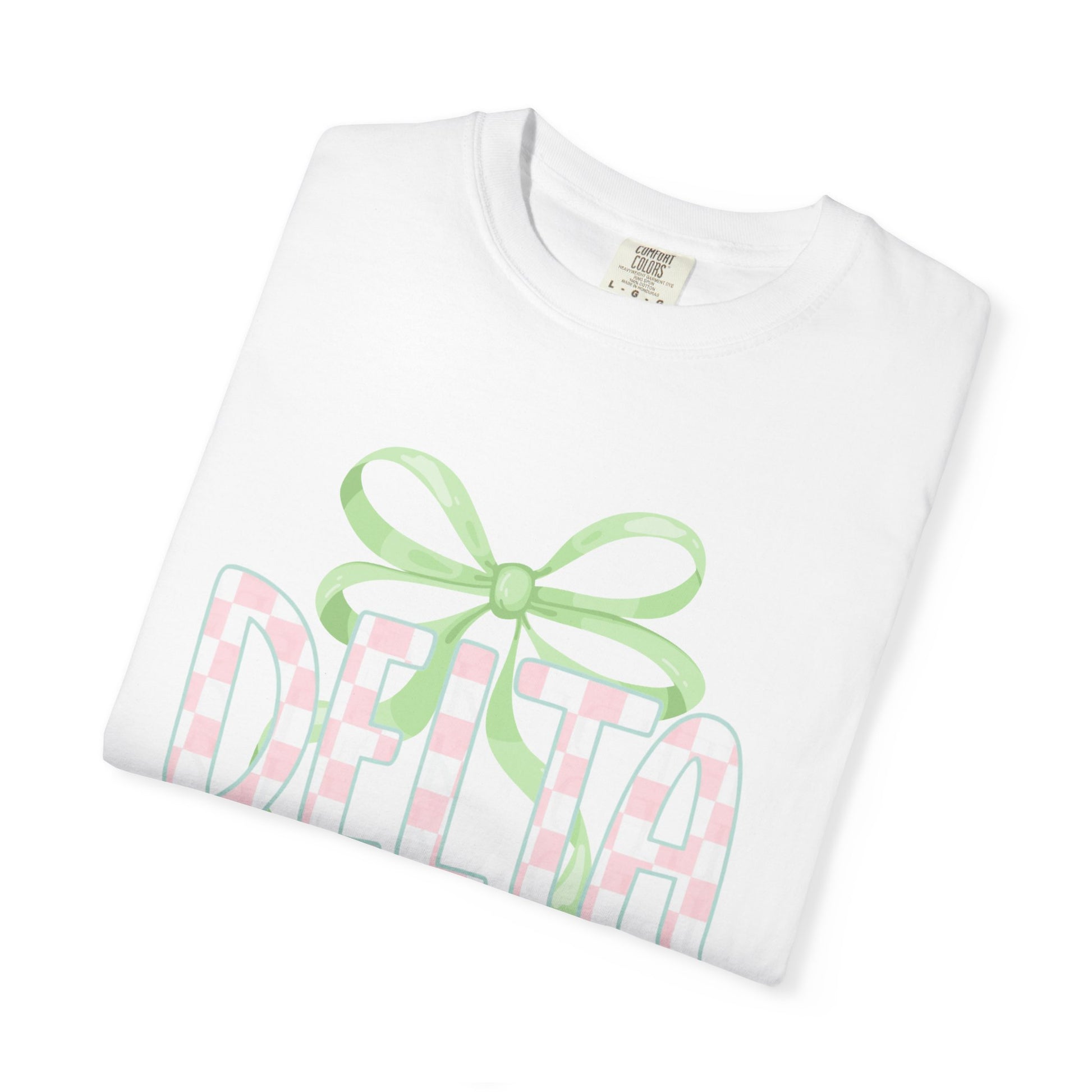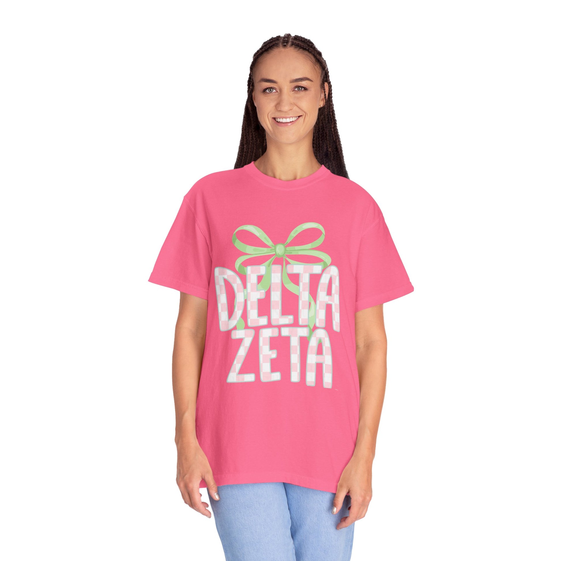 The DZee Garment-Dyed T-shirt is a cozy and stylish sorority tee, perfect for college wear and a great gift for sorority sisters. It exudes a casual style, ideal for spring celebrations and everyday wear. This tee is relevant to college students, sorority members, and anyone who loves comfortable and fashionable clothing. Perfect for gifting during sorority events, birthdays, and holidays.
