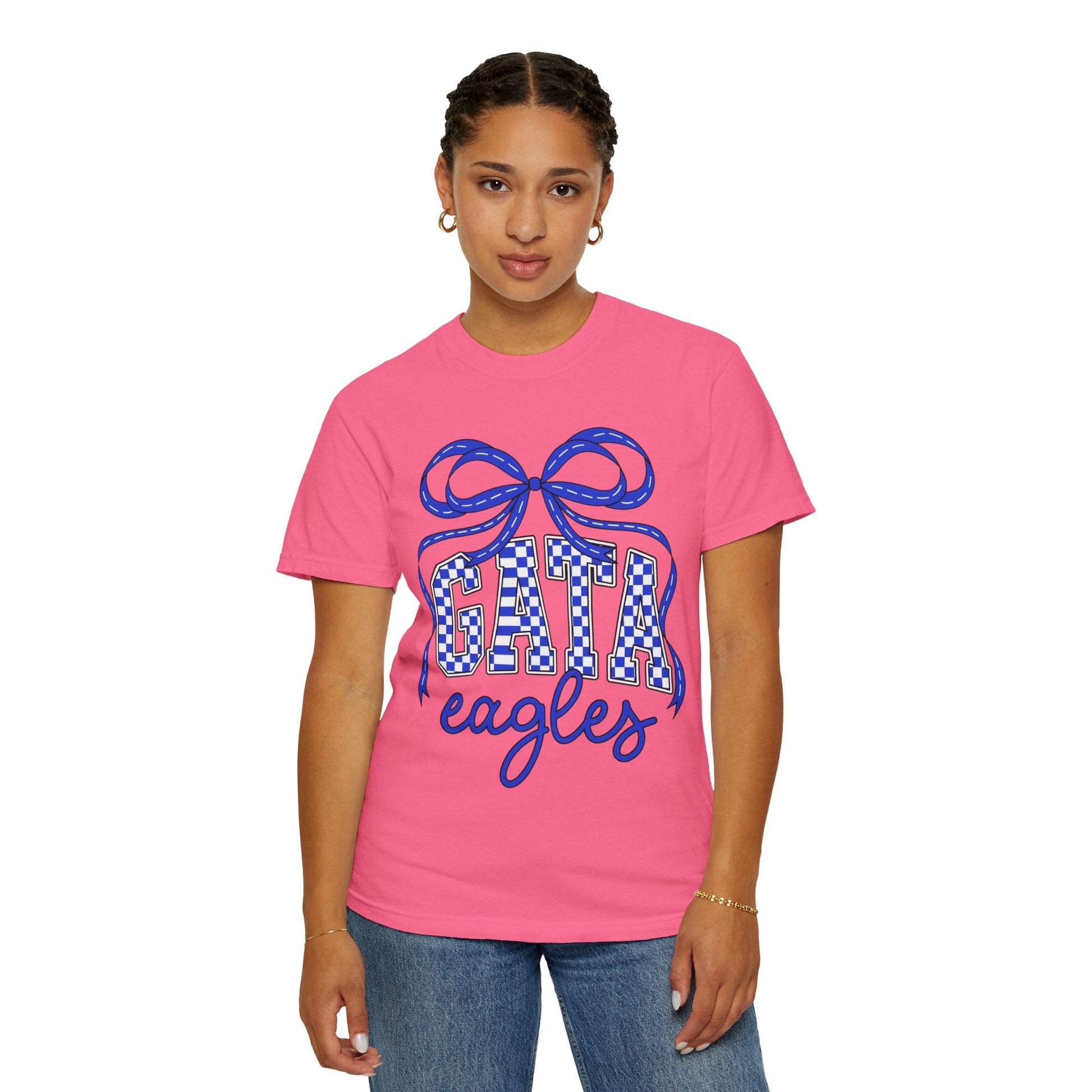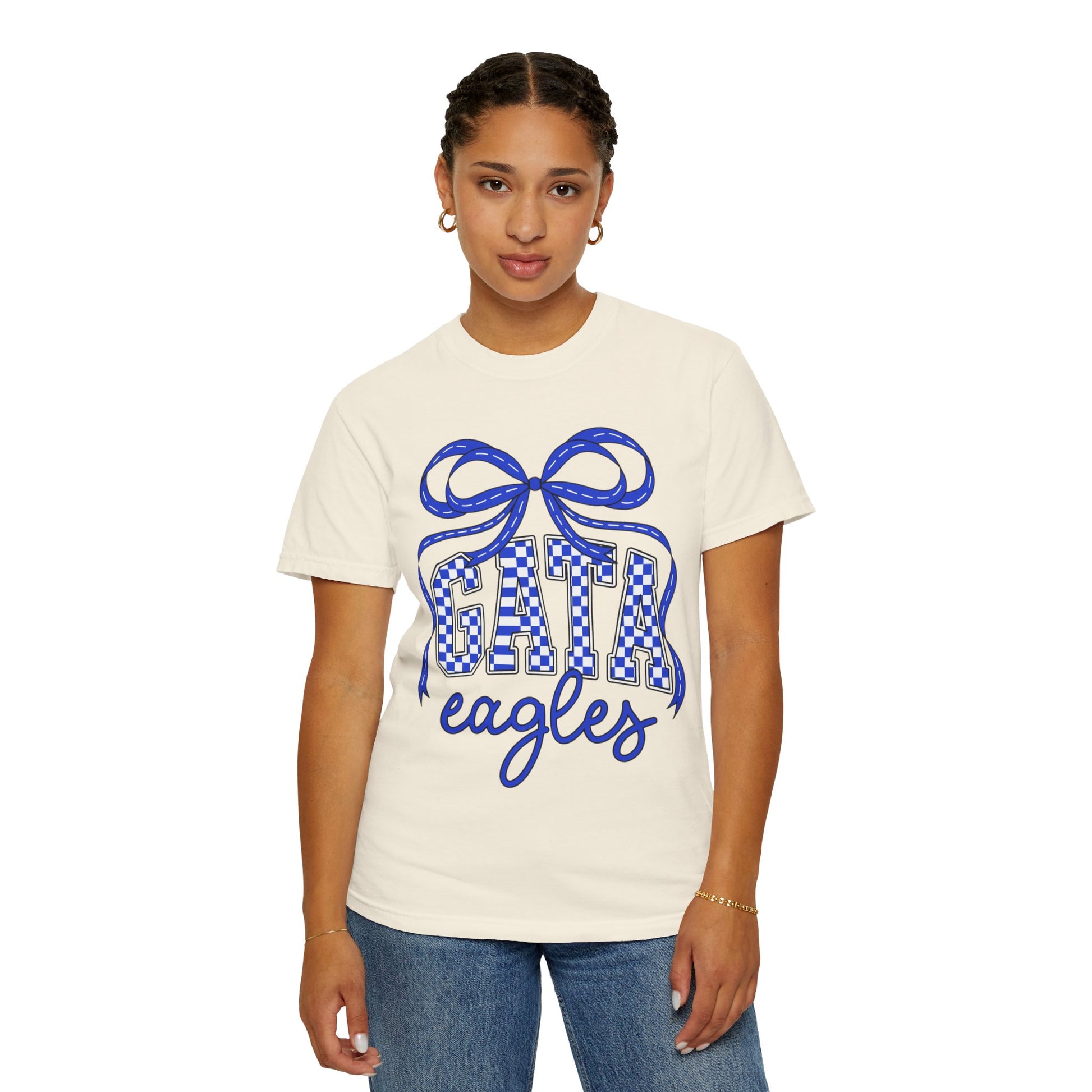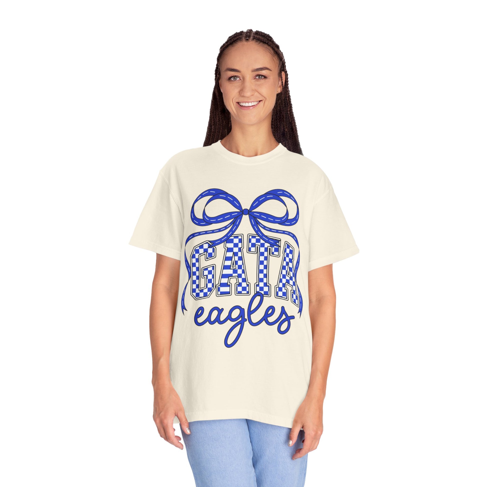 This GATA Eagles Garment-Dyed T-shirt is perfect for showing spirit wear and team pride. It is a casual outfit that makes a great gift for sports fans and those looking to showcase their school pride. The soft color and texture of the garment make it comfortable to wear for various occasions.
