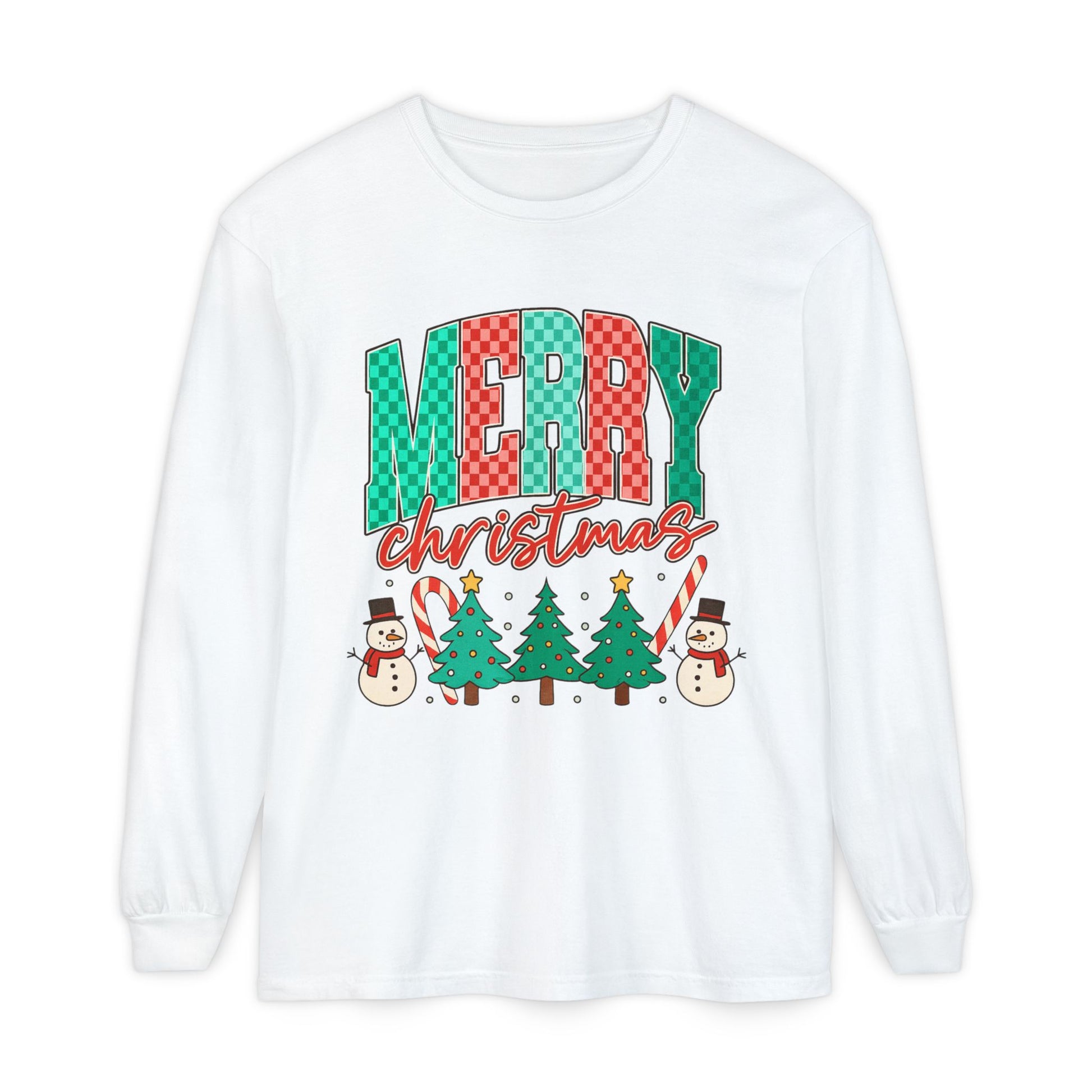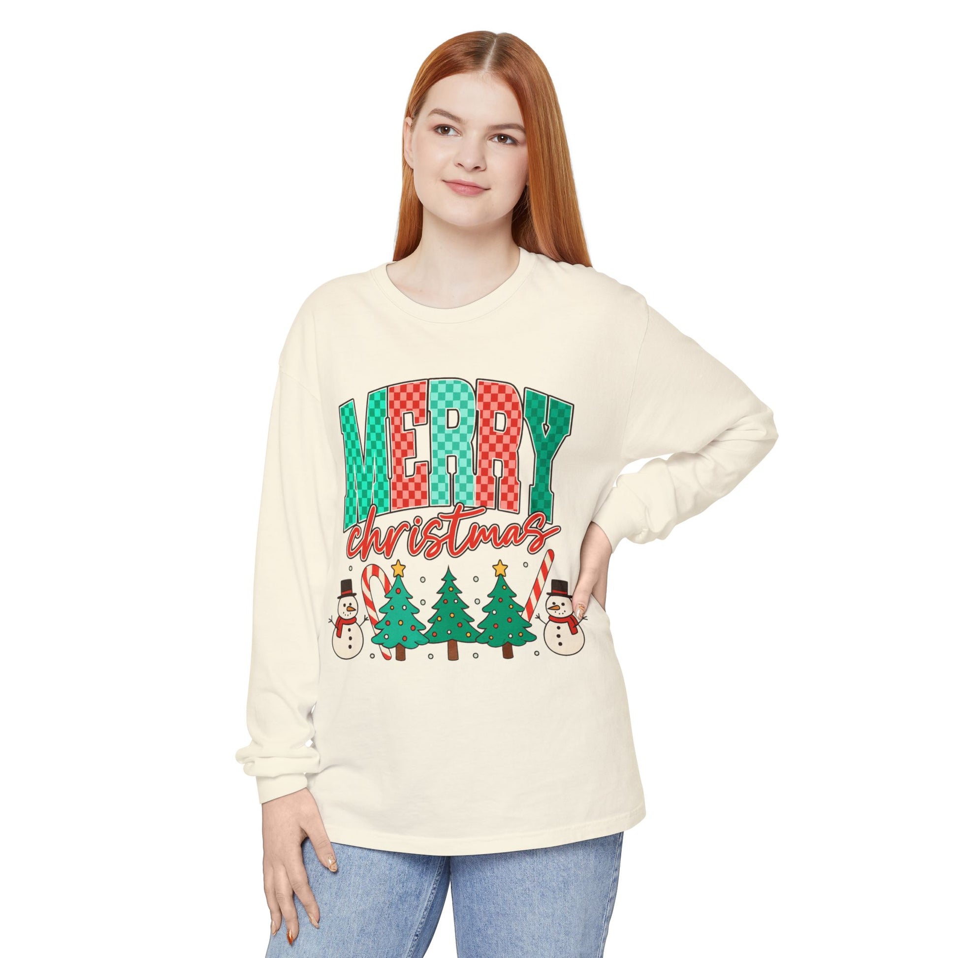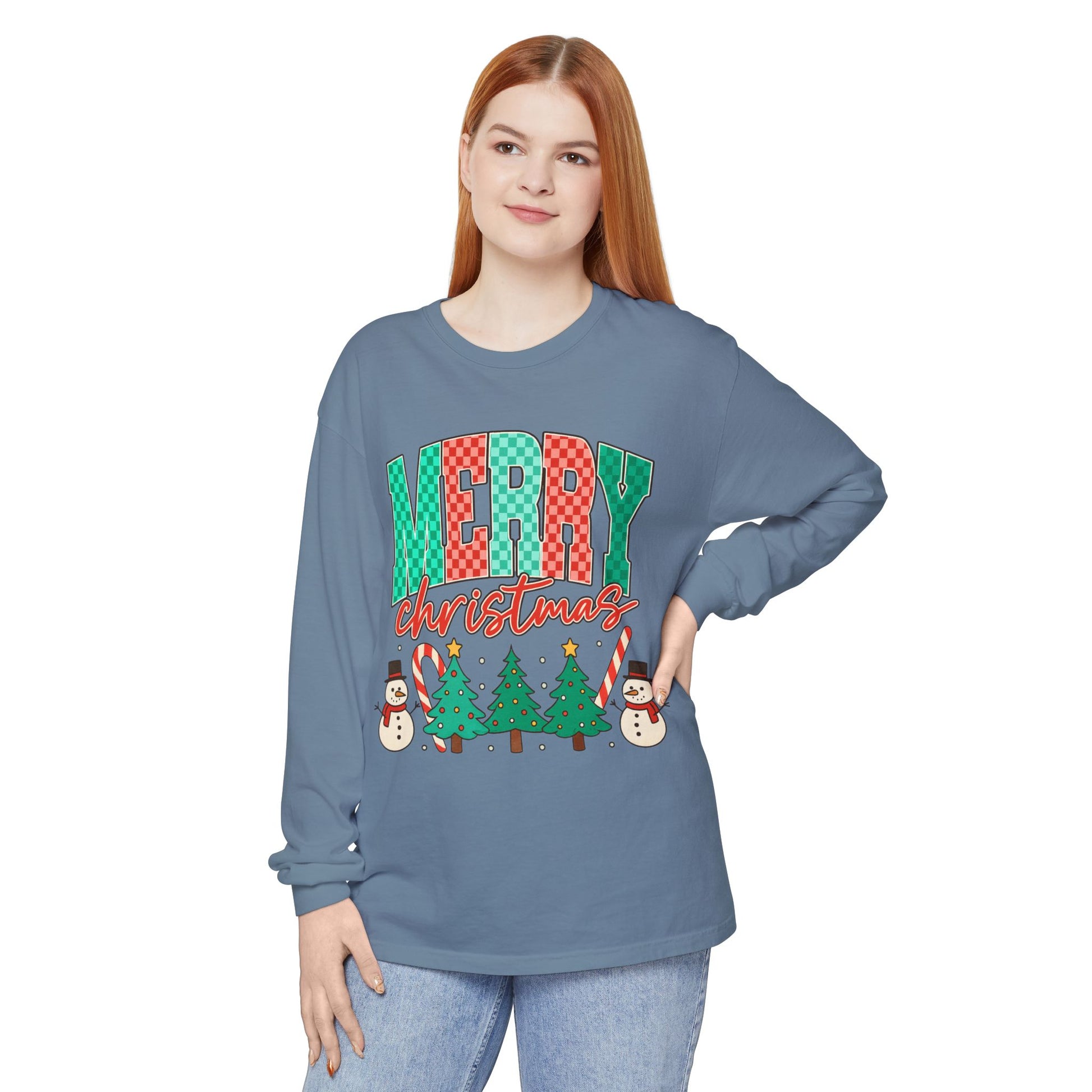 Elevate your festive wardrobe with this unisex long sleeve t-shirt, perfect for adding a cozy touch to your holiday celebrations. Adorned with playful designs of Christmas trees, charming snowmen, and vibrant text, this shirt embodies the joyful spirit of the season. Its soft, garment-dyed fabric provides a relaxed vibe that’s ideal for family gatherings, cozy nights by the fire, or festive outings. Whether you're gifting it to a loved one or treating yourself, this classic fit shirt is a delightful addition for anyone who enjoys spreading holiday cheer. Perfect for Christmas parties, winter celebrations, and holiday hangouts, it appeals to those looking to embrace the warmth and happiness of the season.