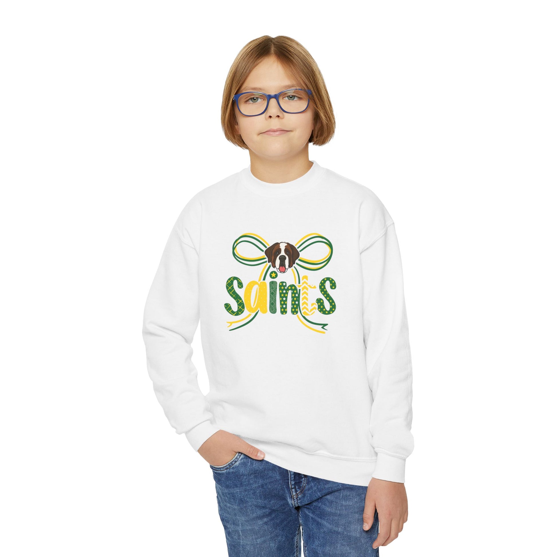 Saints Youth Crewneck Sweatshirt, Comfortable Sweatshirt for Kids, Sports Team Apparel, Gift for Young Fans, Holiday and Game Day Wear