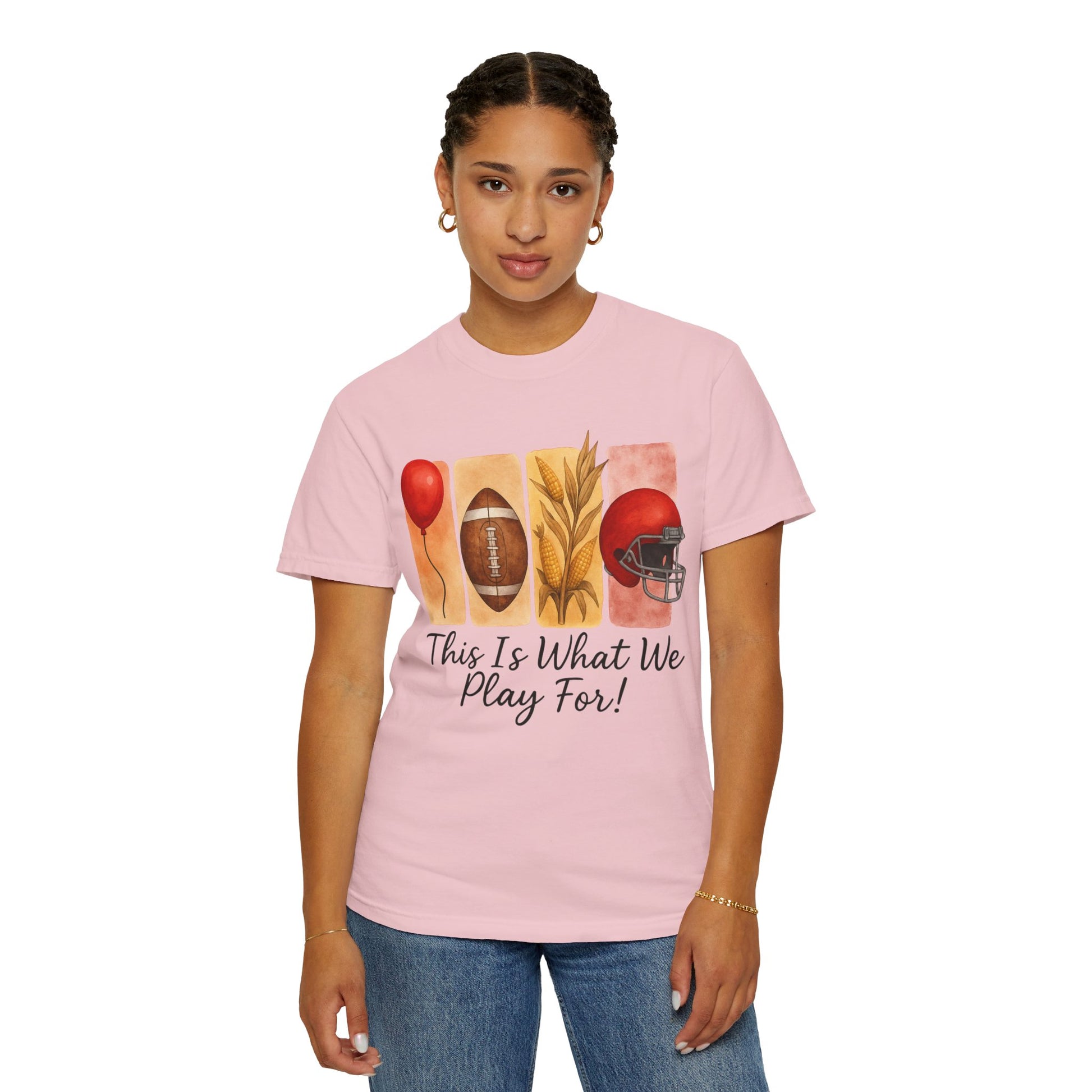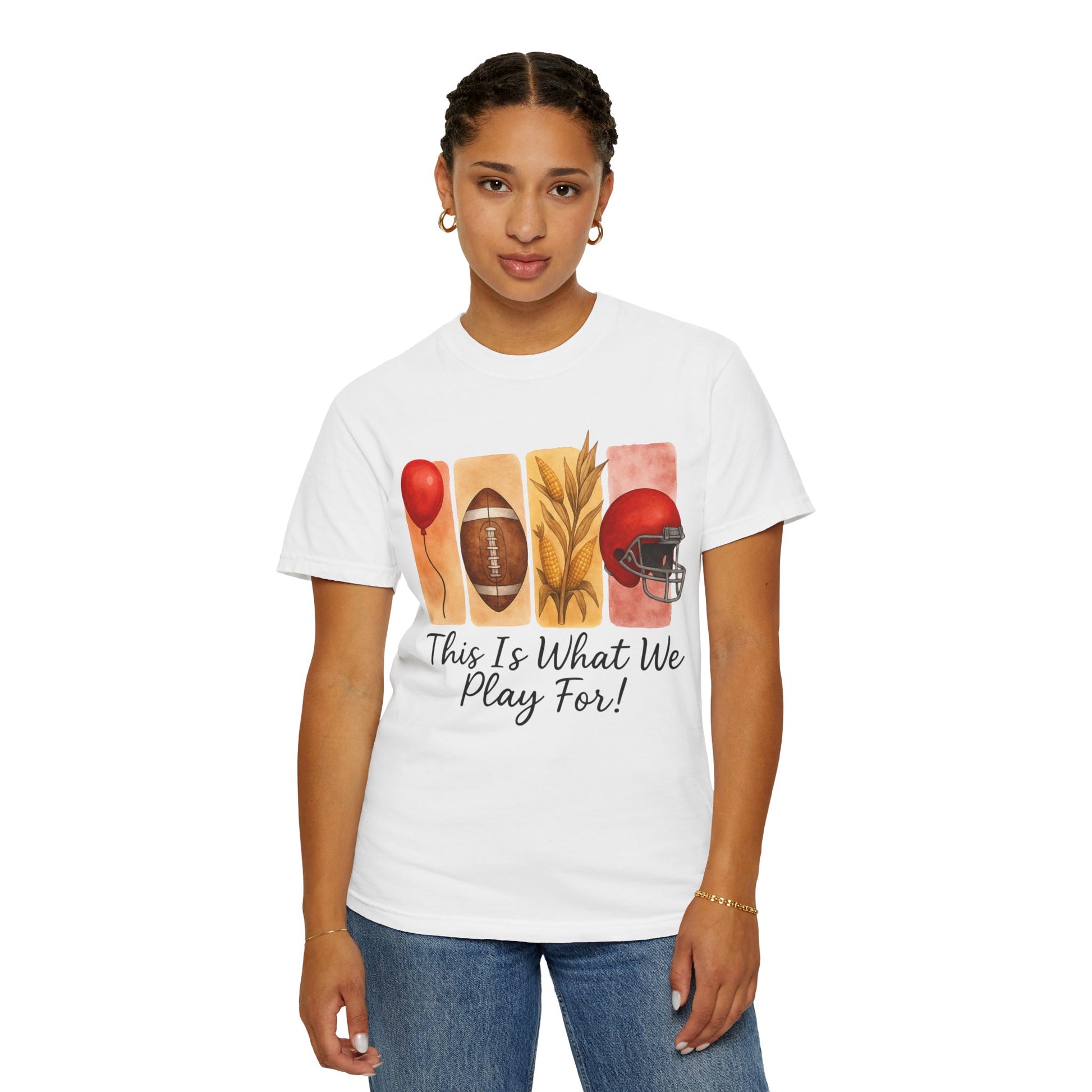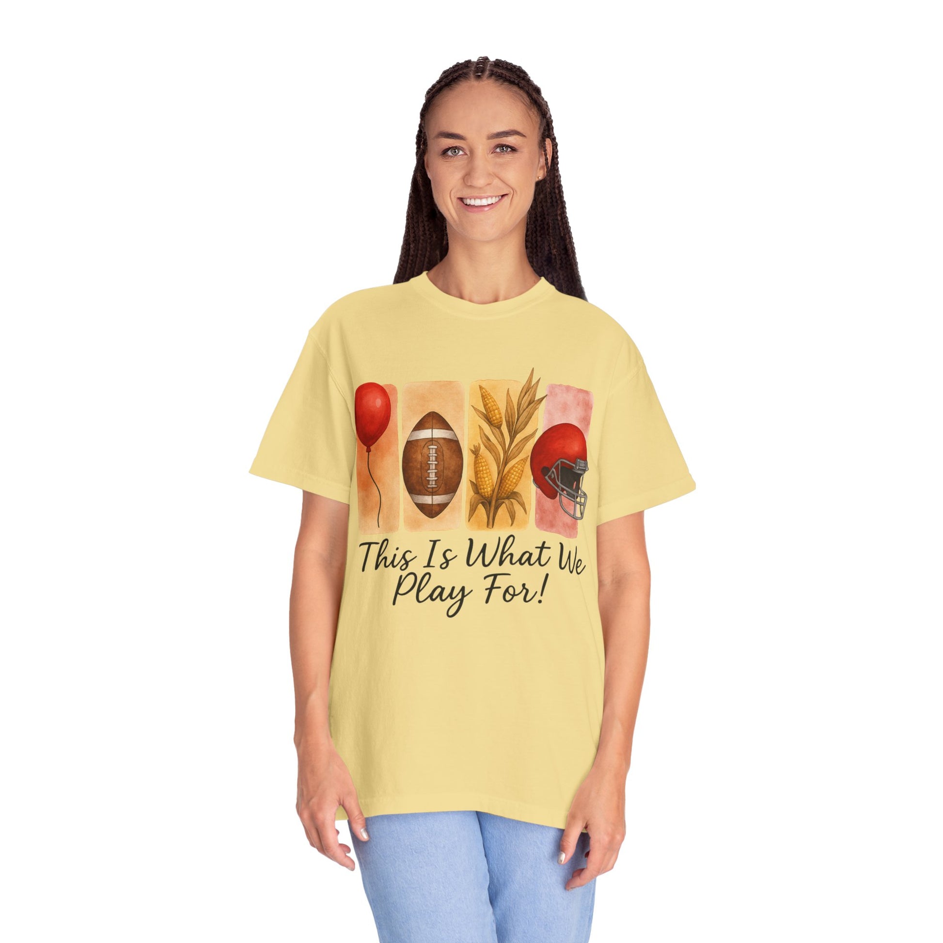 Sporty Garment-Dyed T-Shirt for Game Days, Football Fans Apparel, Casual Wear, Gift for Sports Lovers, Unique Team Spirit Top. Perfect for those who love sports and want to show their team spirit. Ideal for game days, football season, and as a casual everyday wardrobe staple.